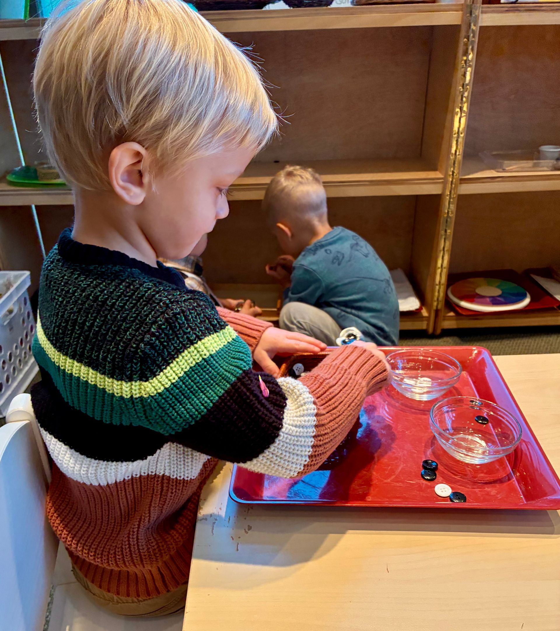 - practical life works, like flower arranging, sweeping, and plant watering, to inspire the habits necessary for prayer and contemplation